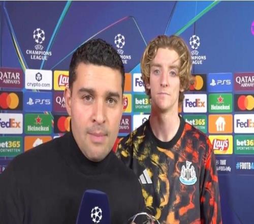 欧冠联赛阶段第6轮,纽卡斯尔客场2-2战平勒沃库森。纽卡前锋安东尼-戈登在赛后接受了TNT体育墨西哥频道的采访。你是本场最佳球员,安东尼-戈登,恭喜你拿到这个奖项。经历这样一